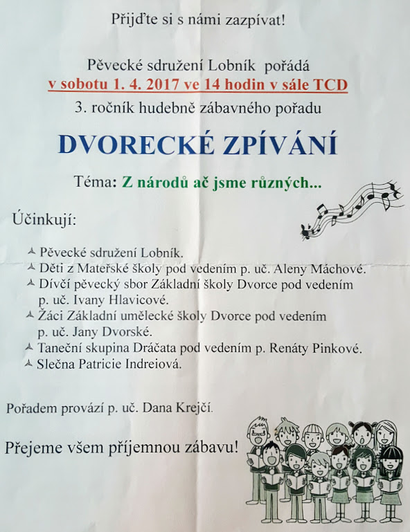20170330_170611 30.3.2017 592 × 769 Dvorecké zpívání Sdílet:SdíletEmailTisknoutFacebookGoogleTwitter Související